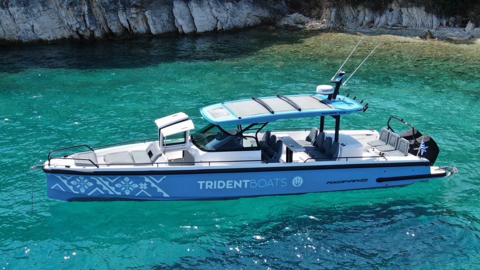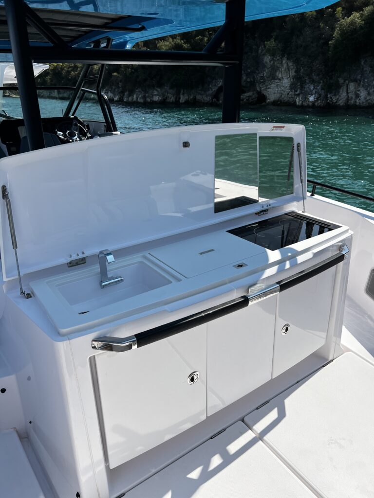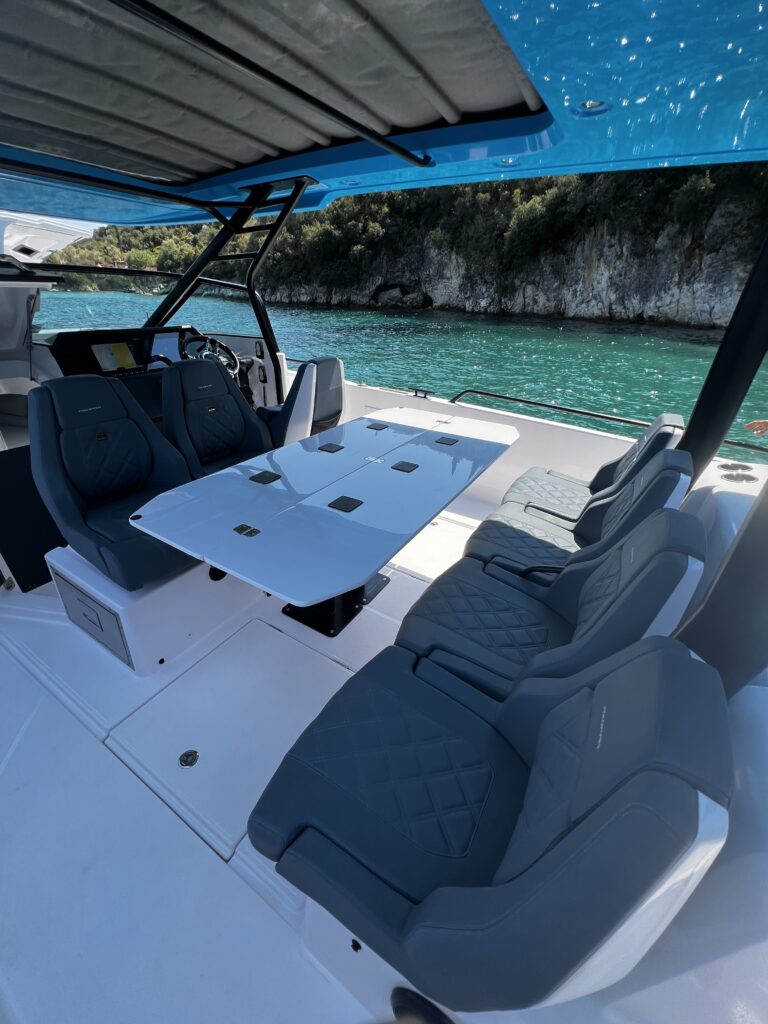 Introducing the brand-new 2023 Axopar 37 Brabus Edition – the perfect blend of luxury, performance, and style. Powered by twin 300HP Mercury Verados with joystick control, it’s ideal for up to 12 passengers.