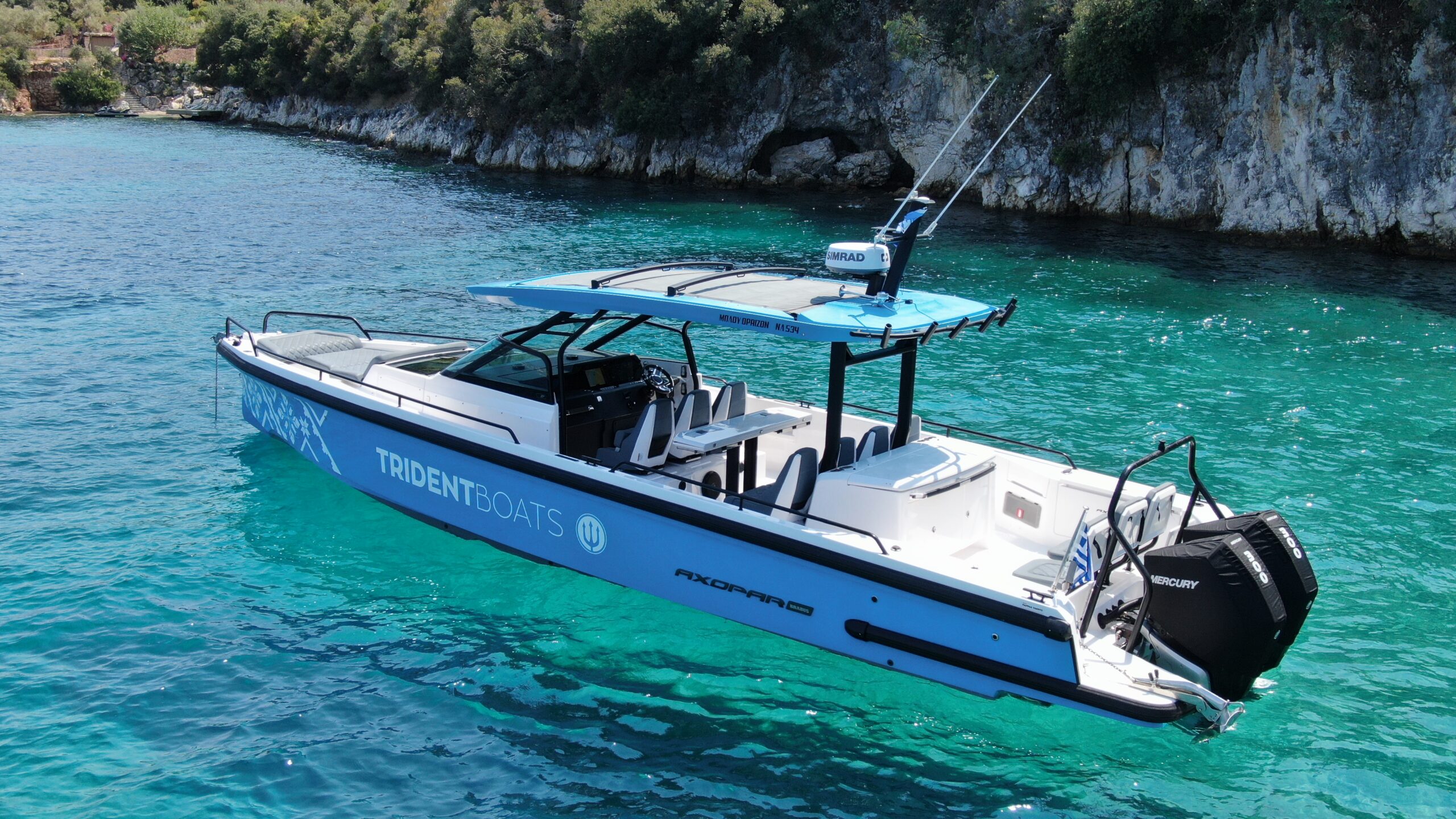 Introducing the brand-new 2023 Axopar 37 Brabus Edition – the perfect blend of luxury, performance, and style. Powered by twin 300HP Mercury Verados with joystick control, it’s ideal for up to 12 passengers.